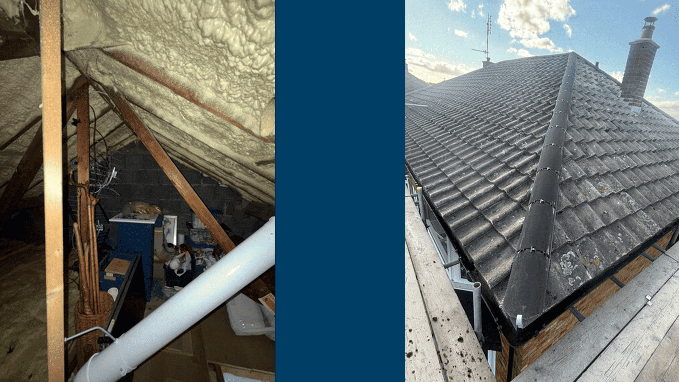 Our team was commissioned to remove approximately 130m² of rigid closed-cell spray foam insulation that had been applied directly to the roofing membrane and structure. Following the removal, we carried out a full roof replacement to restore structural integrity, improve ventilation, and bring the property in line with building regulations. The project also included a loft insulation upgrade, ensuring compliance with current energy efficiency standards.